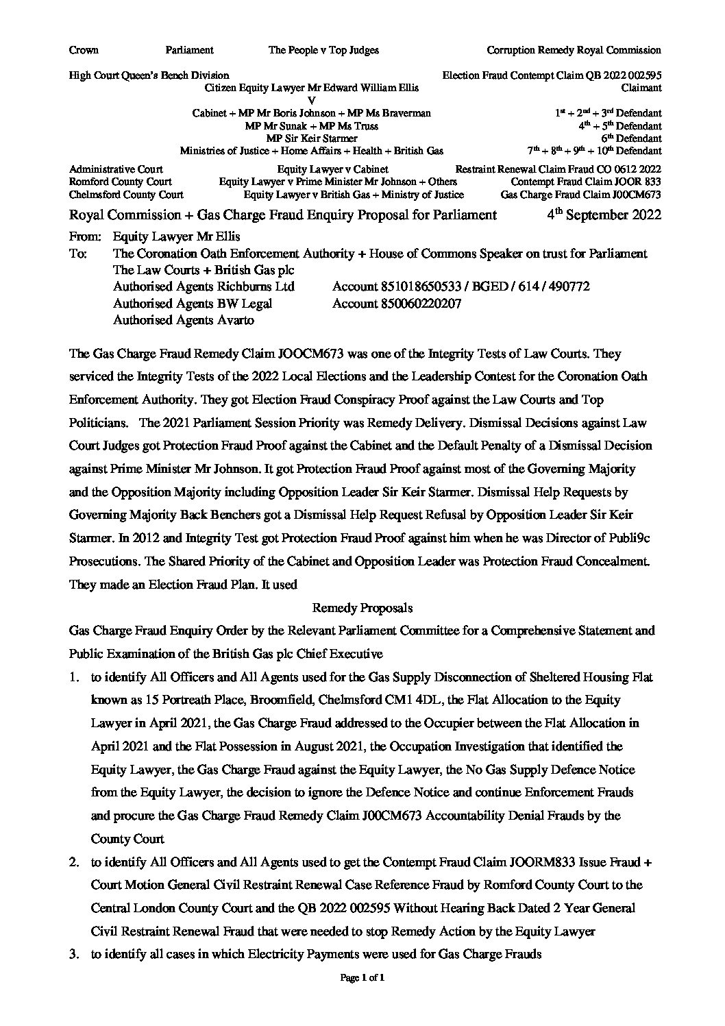 2022-09-04-Royal-Commission-Gas-Charge-Fraud-Enquiry-Proposal-for-Parliament-from-Equity-Lawyer-Mr-Ellis-v-Cabinet-Others