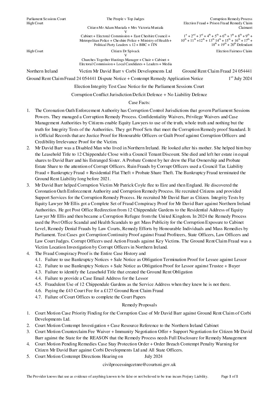 2024-07-01-Ground-Rent-Claim-Fraud-24-054441-Dispute-Notice-Contempt-Remedy-Application-Notice-of-Mr-David-Barr-v-Corbi-Developments-Ltd