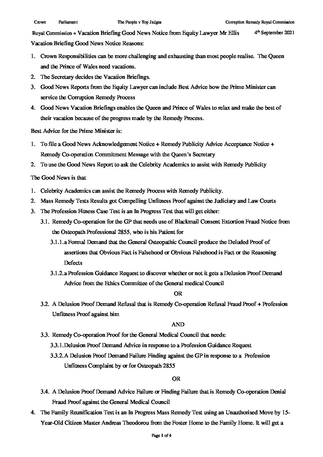 2021 09 04 Royal Commission + Vacation Briefing Good News Notice from Equity Lawyer Mr Ellis 2021 09 04 Royal Commission + Vacation Briefing Good News Notice from Equity Lawyer Mr Ellis